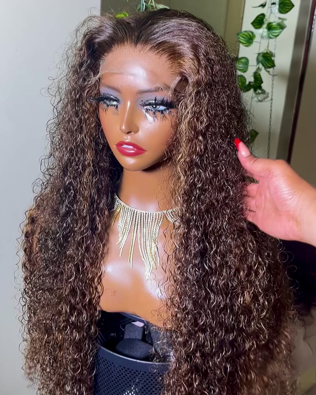 HIGHLIGHTED SPANISH CURL- Glueless Premium Raw Wig